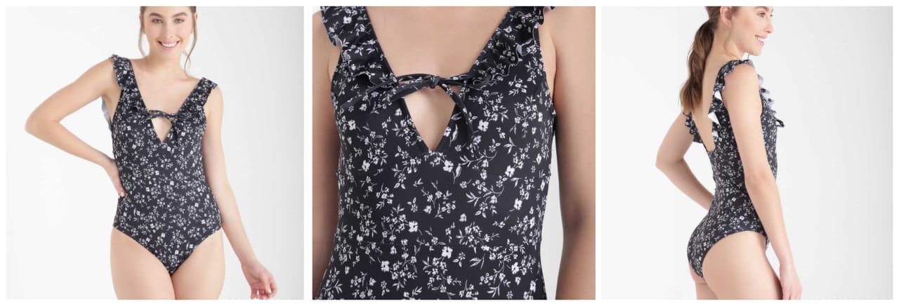 Chicas: un traje de baño completo nunca pasará de moda. Este traje de baño Aeropostale con estampado floral, espalda descubierta y con olanes te ayudará a lucir ese cuerpo fenomenal que te representa.