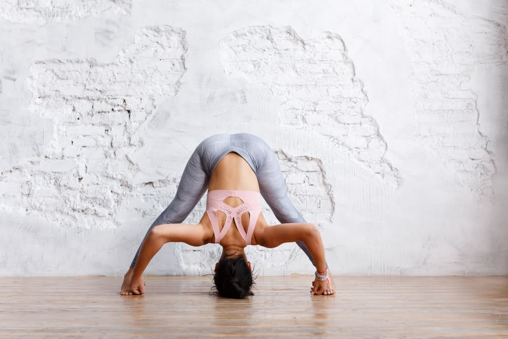 - Flexiónate hasta donde llegues. Despega las manos de la espalda y lleva los brazos, estirados, tan lejos de tu espalda como puedas. Mantente allí algunas respiraciones.