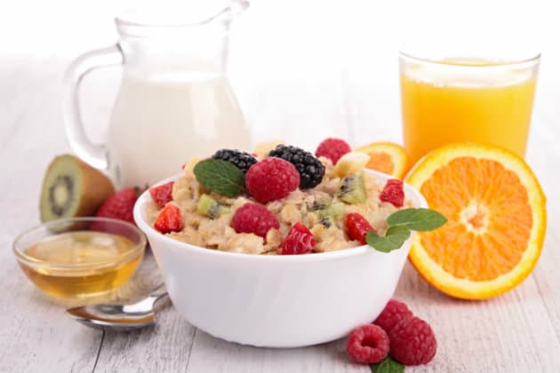Una de las peores cosas que puedes hacer después de comer en exceso es comenzar con mal pie el desayuno al día siguiente. Lo mejor es comer un desayuno completo como una taza de avena o un tazón de cereal alto en fibra.
