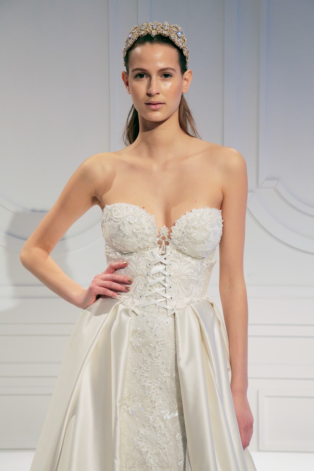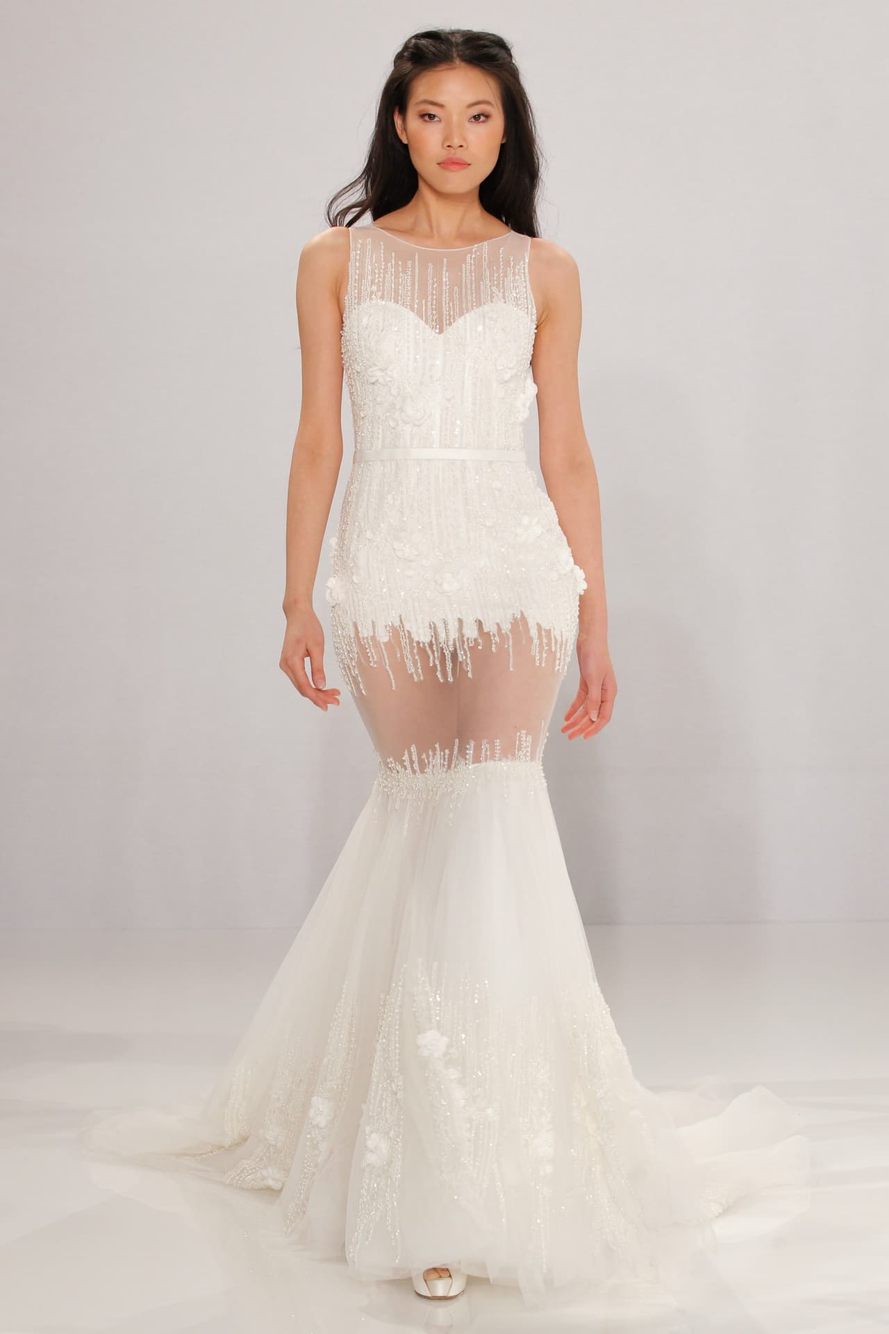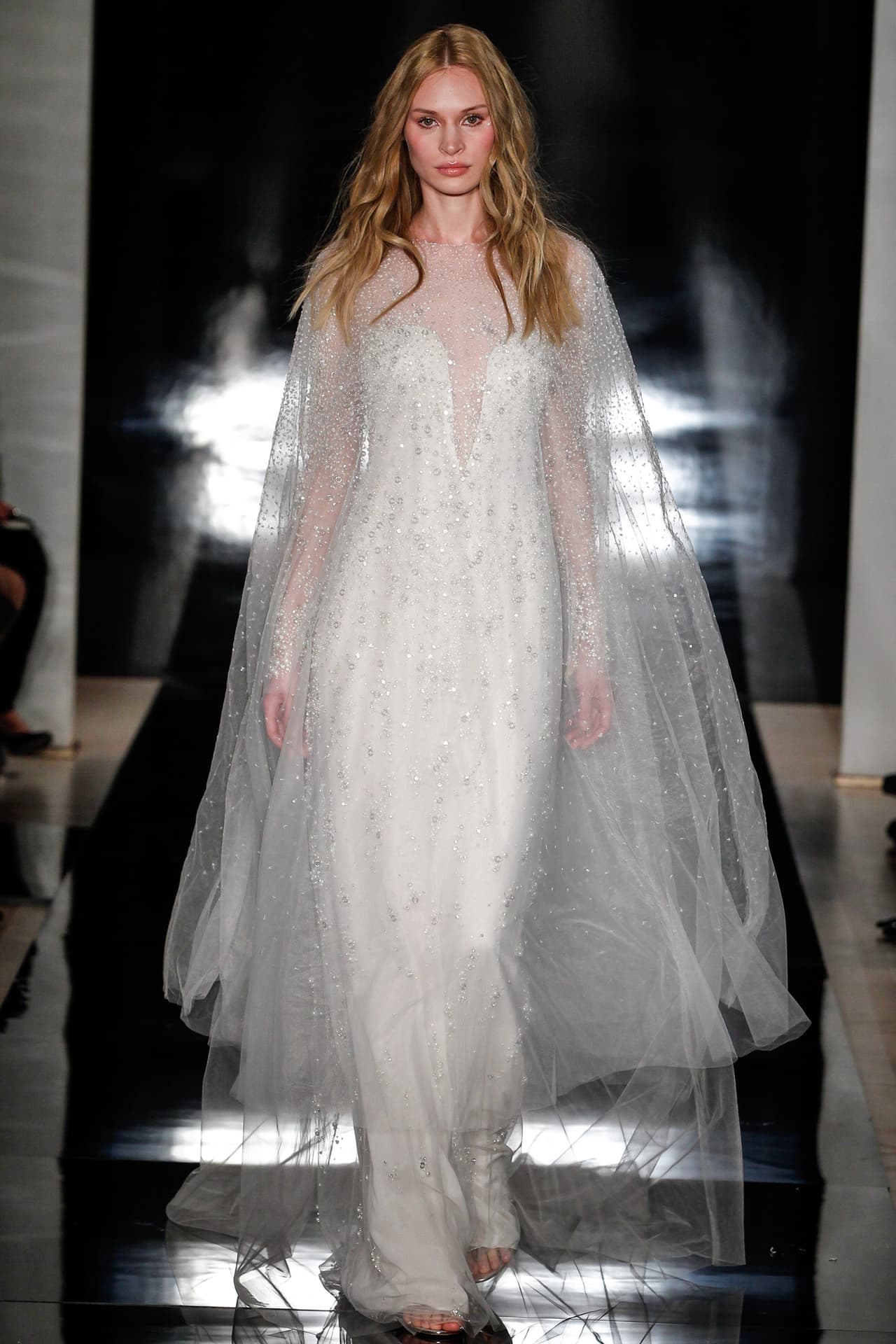 Las capas de todos los largos, texturas y transparencias dominaron las pasarelas de los vestidos de novia de primavera 2017.