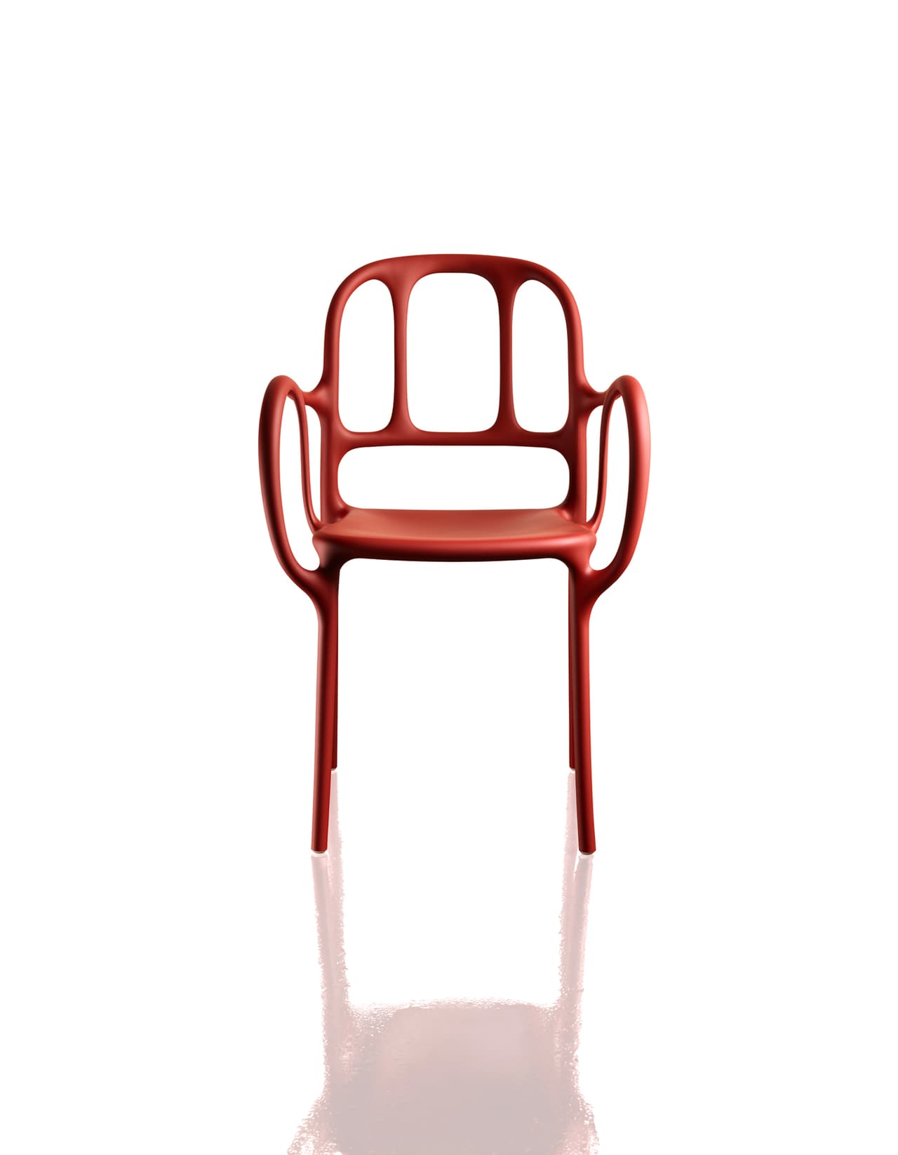 Con Magis, Jaime Hayón trabaja por primera ocasión con el plástico, para la producción de Milá. Su objetivo: aprovechar las propiedades del material y la técnica del moldeo por inyección asistida por gas para crear una silla inspirada en el modernismo catalán que resultaría imposible producir en madera. La mezcla perfecta de innovación y expresión.