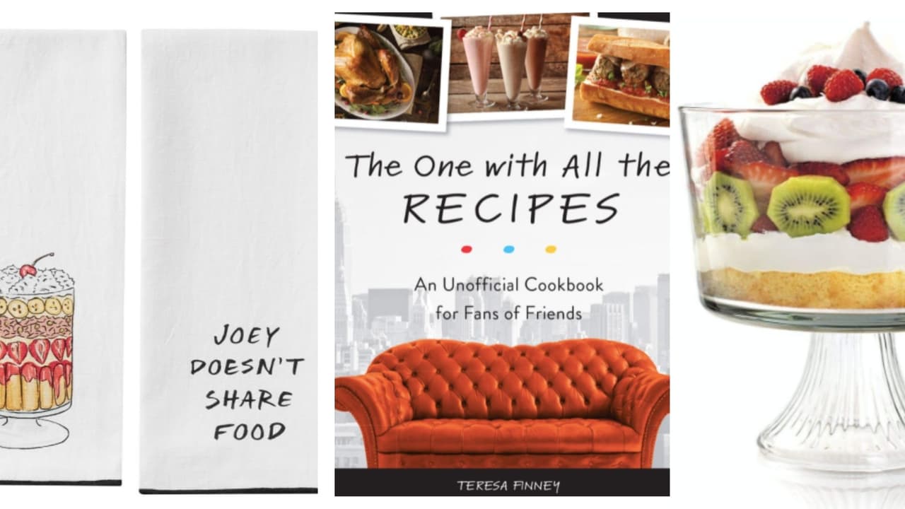 - El libro de recetas de cocina de Friends en Barnes&Noble. Precio: $22.49 (Incluye las recetas de las galletas de chocolate de French Aunt, las malteadas, los sandwiches y el triffle de Rachel)