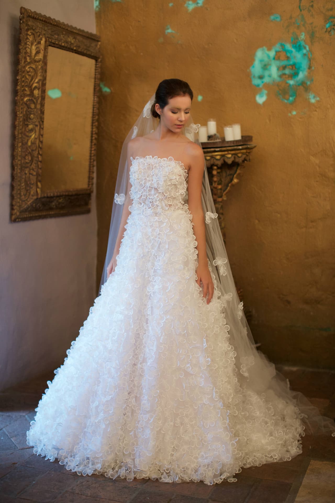 “Esta colección tiene vestidos que si una mujer lleva un velo, por ejemplo, sabes que es la novia, pero si no, eres una invitada más, y lo he hecho así pensando en que las mujeres quieren volver a usar su vestido y no dejarlo guardado en una caja”.