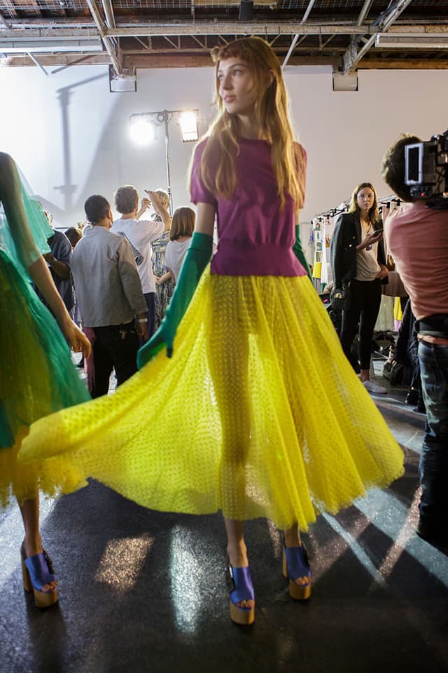 El mensaje más importante en esta colección es el color. En una entrevista que Dell'Acqua realizó para Voguerunway.com, el director creativo mencionó que la paleta de colores fue inspirada en el trabajo del artista Erwin Blumenfeld.