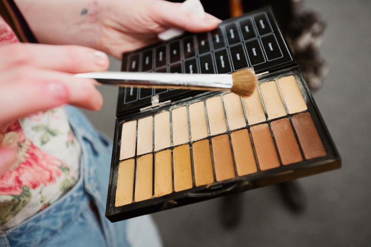 Utilizó muy pocos productos, entre ellos la paleta profesional BBU de Bobbi Brown (que incluye base de maquillaje y correctores) y en los labios el tono tinto de la paleta para labios Pro Lip Palette de MAC. Además agregó, un poco de vaselina en los párpados y polvo para eliminar los brillos. No uso mascara de pestañas.