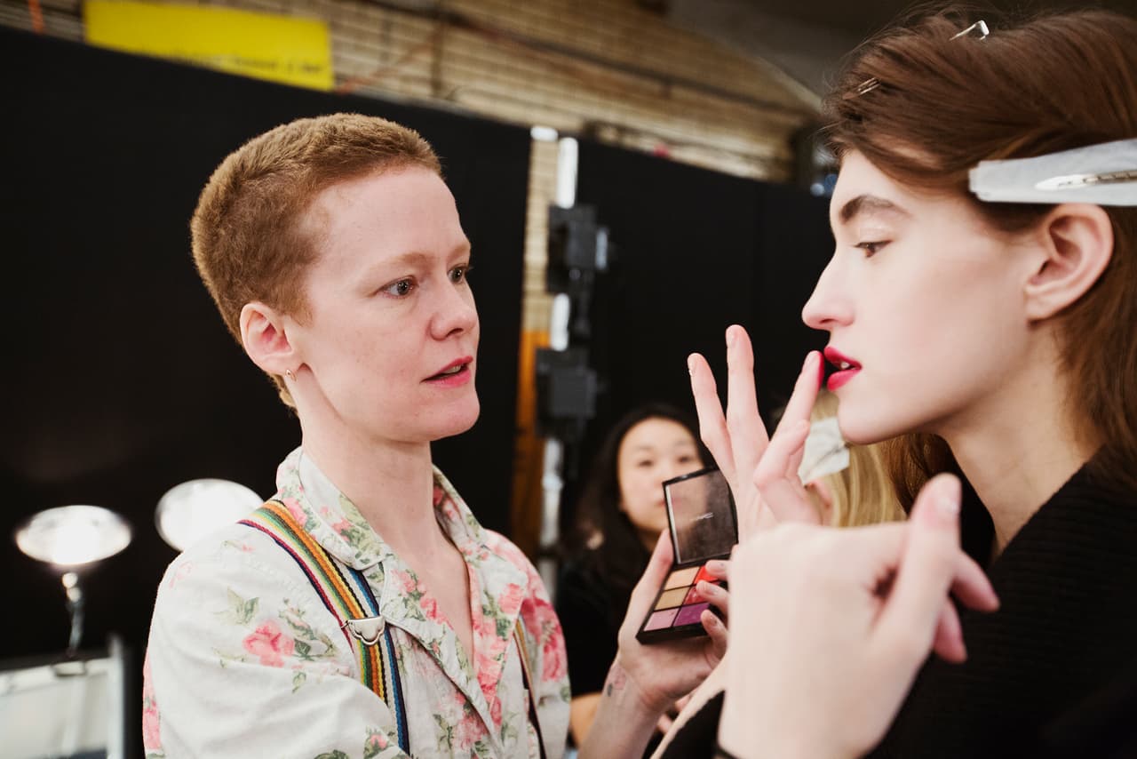Al terminar la entrevista fuimos al backstage en donde vimos trabajar a la maquillista Alice Lane, quien diseño el look. “Es un look muy chic, se trata de que todas las modelos se sientan lo más hermosas que se pueda. Al ser la primer presentación del diseñador en NYFW no deseaba que el maquillaje robará demasiada atención a sus hermosas prendas”, comentó la artista.