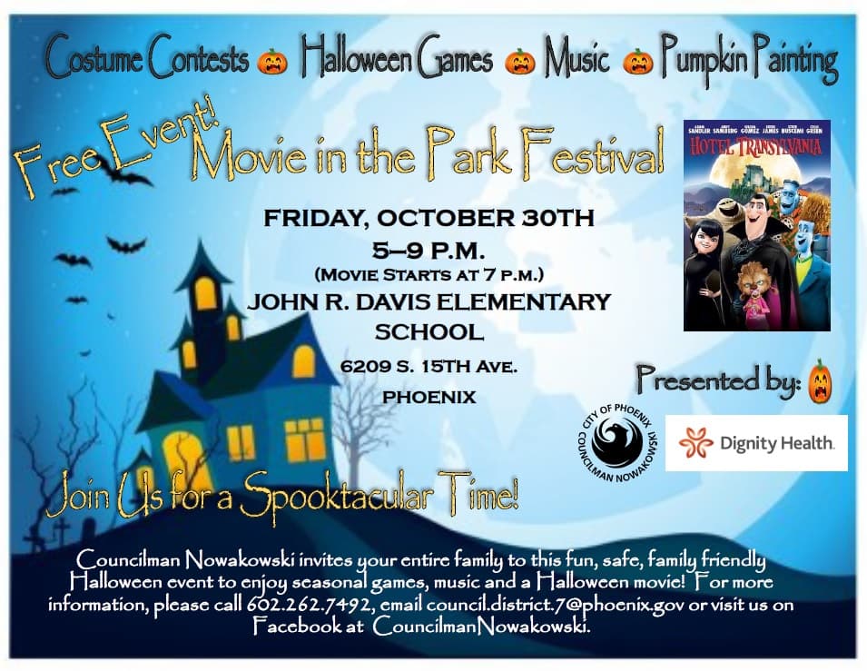 SCOTTDALE: El Festival Anual del Otoño en el Dorado Park, habrá magos, un bosque encantado, juegos, y mucho más. Es gratis. Abierto de 5 a 9 pm el 31 de octubre. http://www.scottsdaleaz.gov