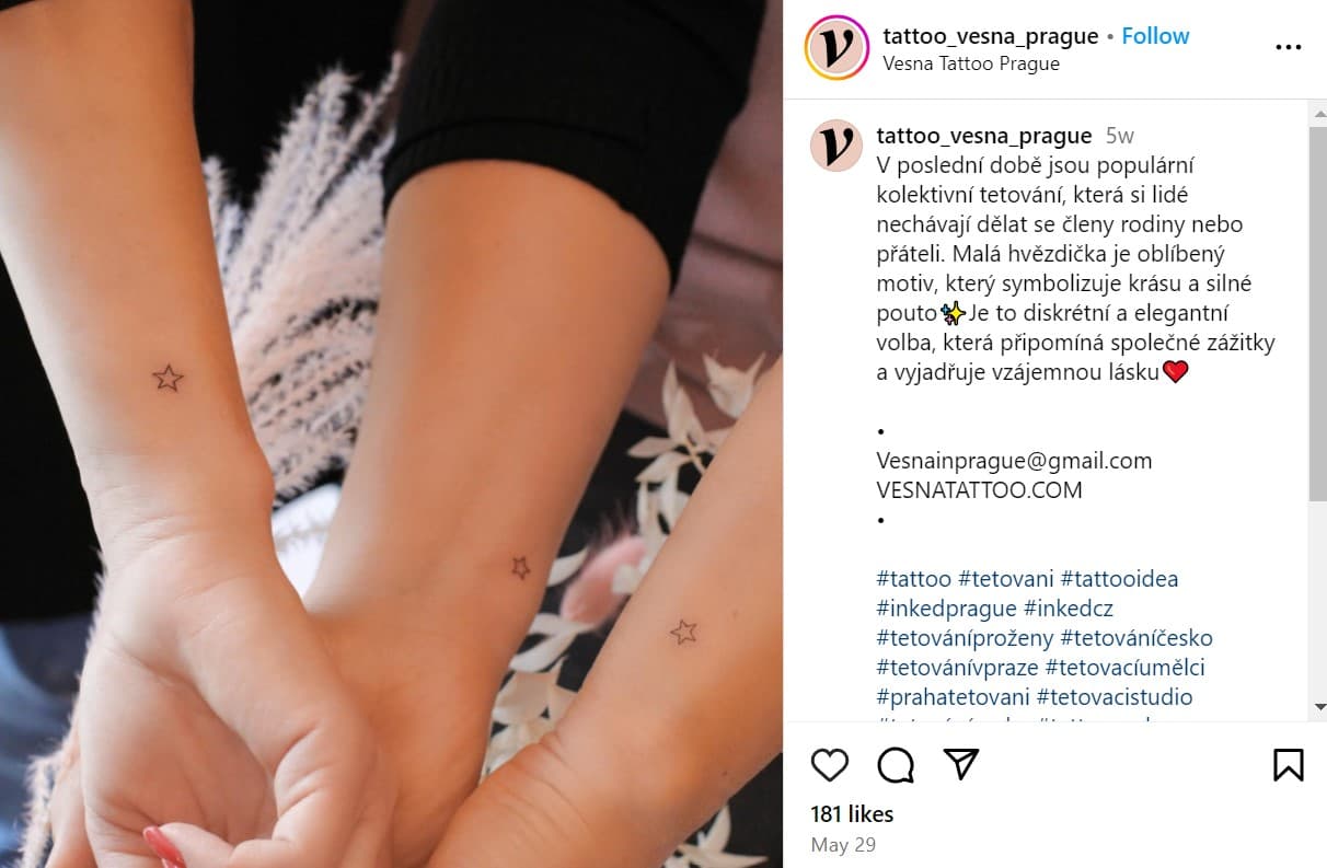 Este tatuaje de estrella compartido entre mejores amigas simboliza una amistad eterna y brillante. Es un hermoso recordatorio de que, sin importar la distancia o el tiempo, su vínculo sigue siendo fuerte y constante, como las estrellas en el cielo.