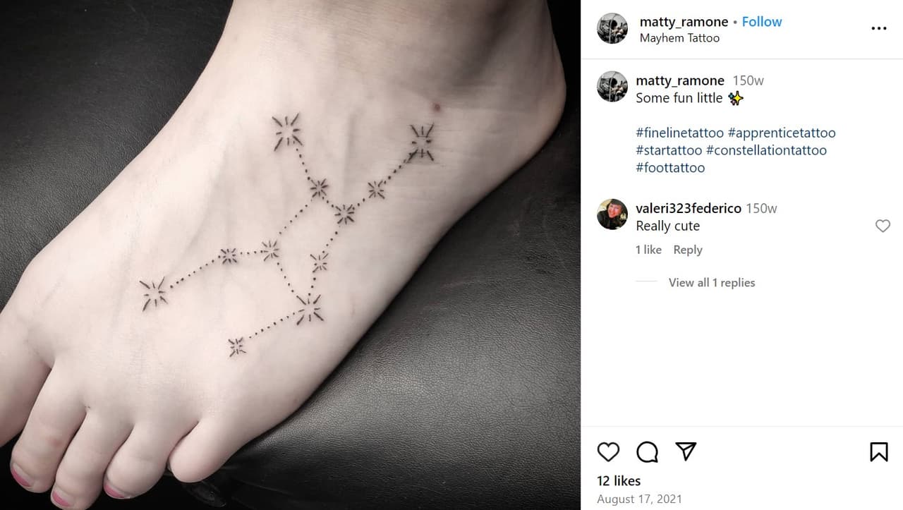 Un tatuaje de constelación puede simbolizar el viaje único e individual de quien lo lleva, cada estrella representa momentos significativos en tu camino.