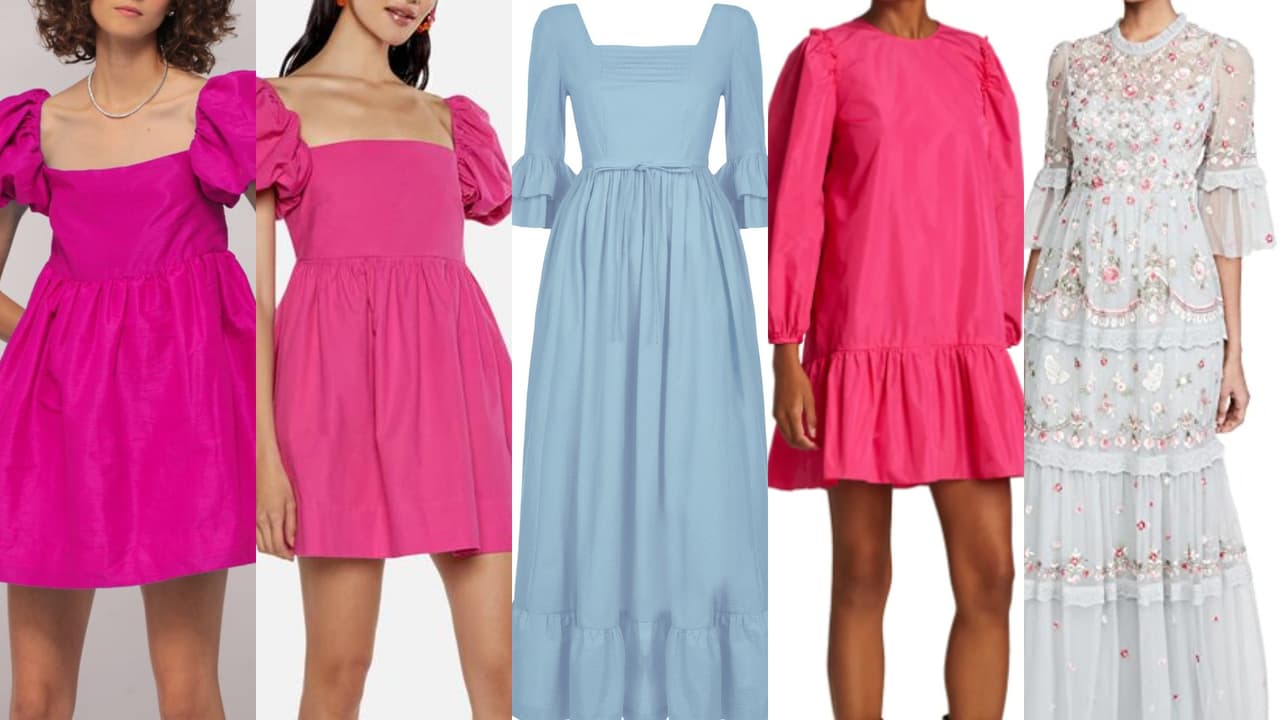 - Vestido Kam de Azeeza. En seda cruda color rosa mexicano con mangas abullonadas, es la perfecta combinación del estilo Regency con un toque moderno. Pero el precio también lo es. Precio: $895.