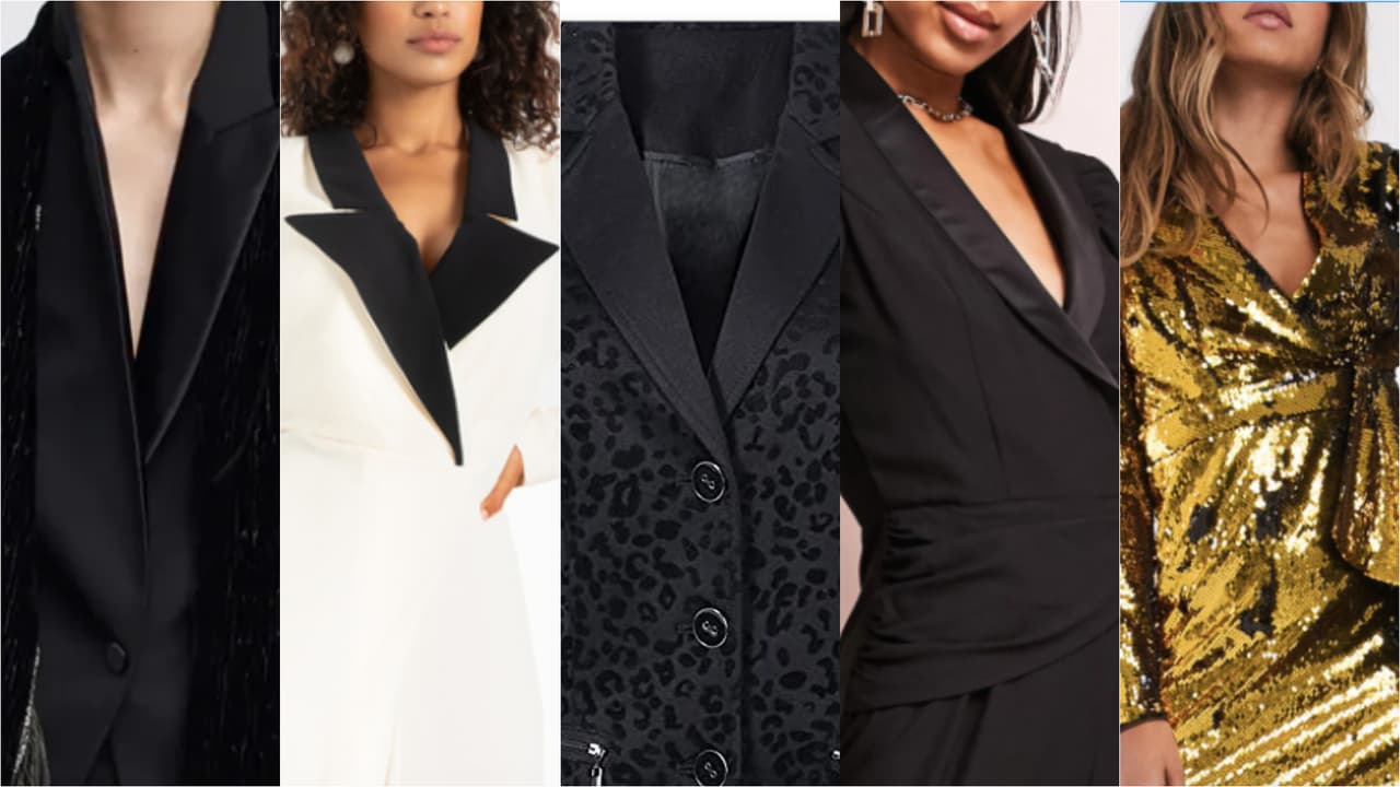 - Metallic Velvet Tuxedo Jacket de Express. Precio: $109