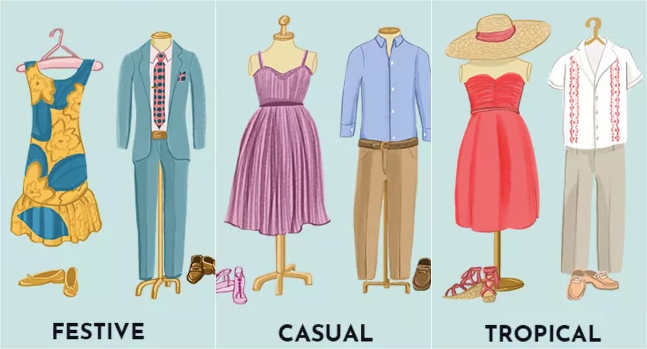 Respeta el dress code. Si tienes duda, confirma en este link. Si no está especificado, no te vistas blanco, no lleves jeans, gorras ni T-shirts. Y si no quieres gastar, puedes rentarlo, comprarlo de segunda mano o vintage.