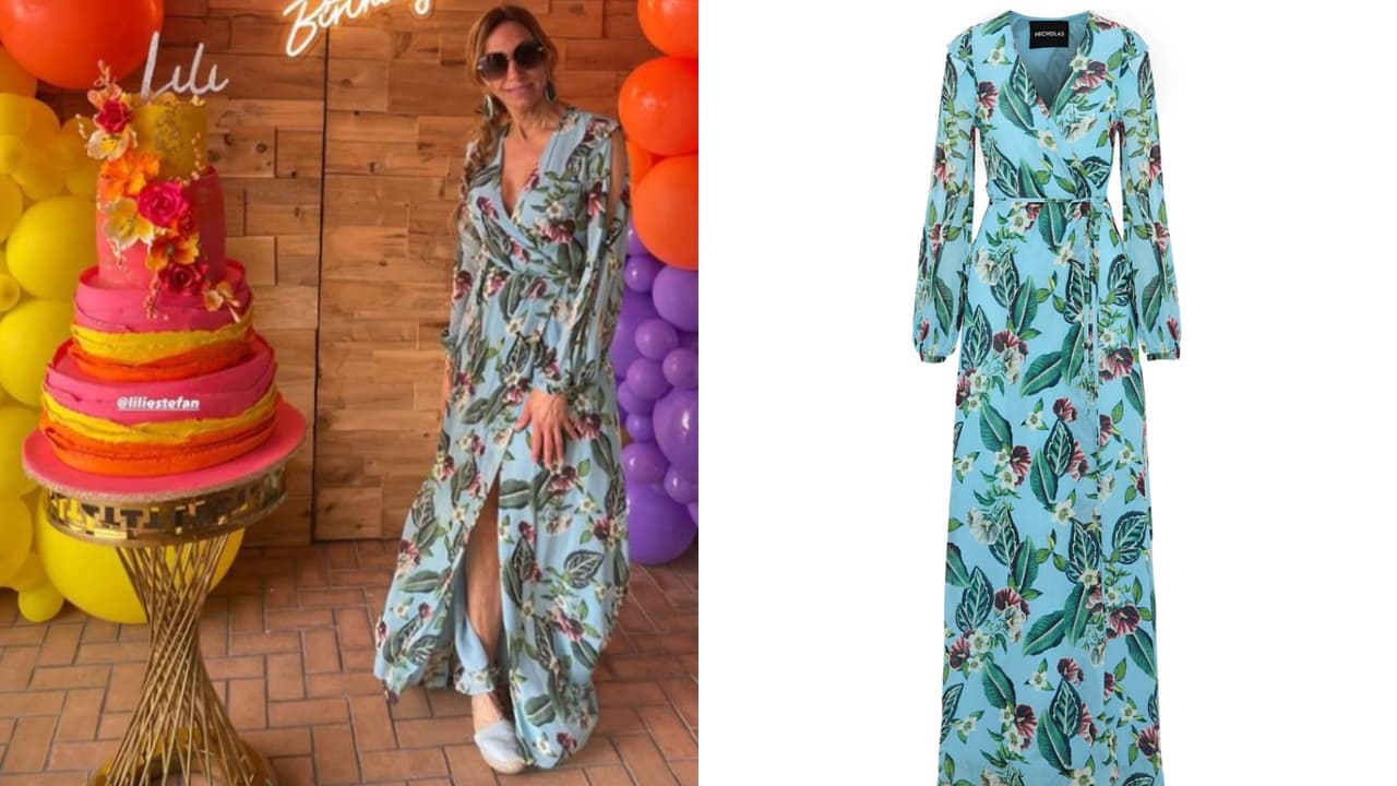 La conductora Lili Estefan festejó cumpleaños enfundada en un vestido envolvente muy de primavera. Era un Nicholas de seda en color azul cielo estampado en flores y mangas abiertas. El vestido ya solo está disponible en una talla (y en algunos sitios de ropa de segunda mano). Si quieres algo parecido, pero no pagar el mismo precio: aquí te lo tengo.