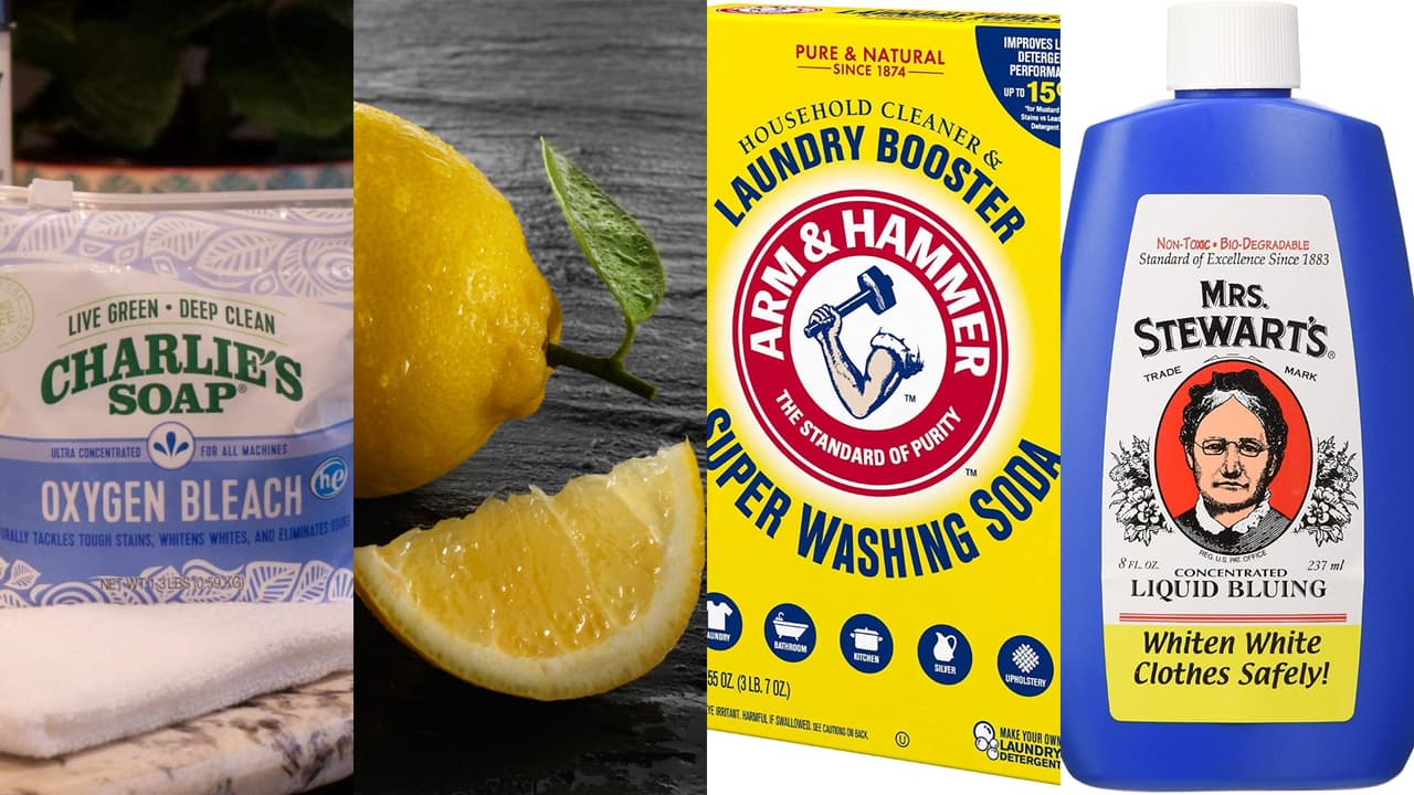 Olvídate del cloro porque puede ser muy irritante. Lo mejor es usar blanqueador oxigenado u oxygen bleach. Contiene percarbonato de sodio, es inodoro, incoloro y es ecológico. Se puede utilizar en casi todas las telas, excepto seda y lana. Perfecto para la ropa de poliéster. Para las manchas amarillas de sudor, basta combinar limón y bicarbonato de sodio en una pasta. Dejar por unas horas y lavar. Y para el tono amarillento de las sábanas, la solución azul compensa el tono amarillento para regresar al blanco nieve.