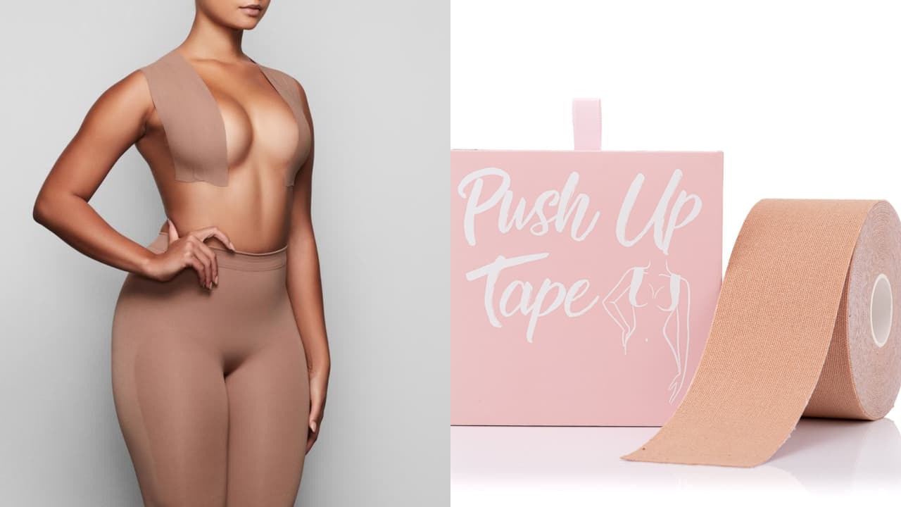 - Cinta adhesiva Push Up Tape de gran soporte y resistente al sudor. Rollo de 8m disponible en 5 colores. Precio: $34.99
