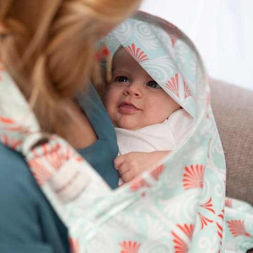 Un delantal que les permitirá tener privacidad en la vía pública y mantener el contacto visual entre mamá y bebé.