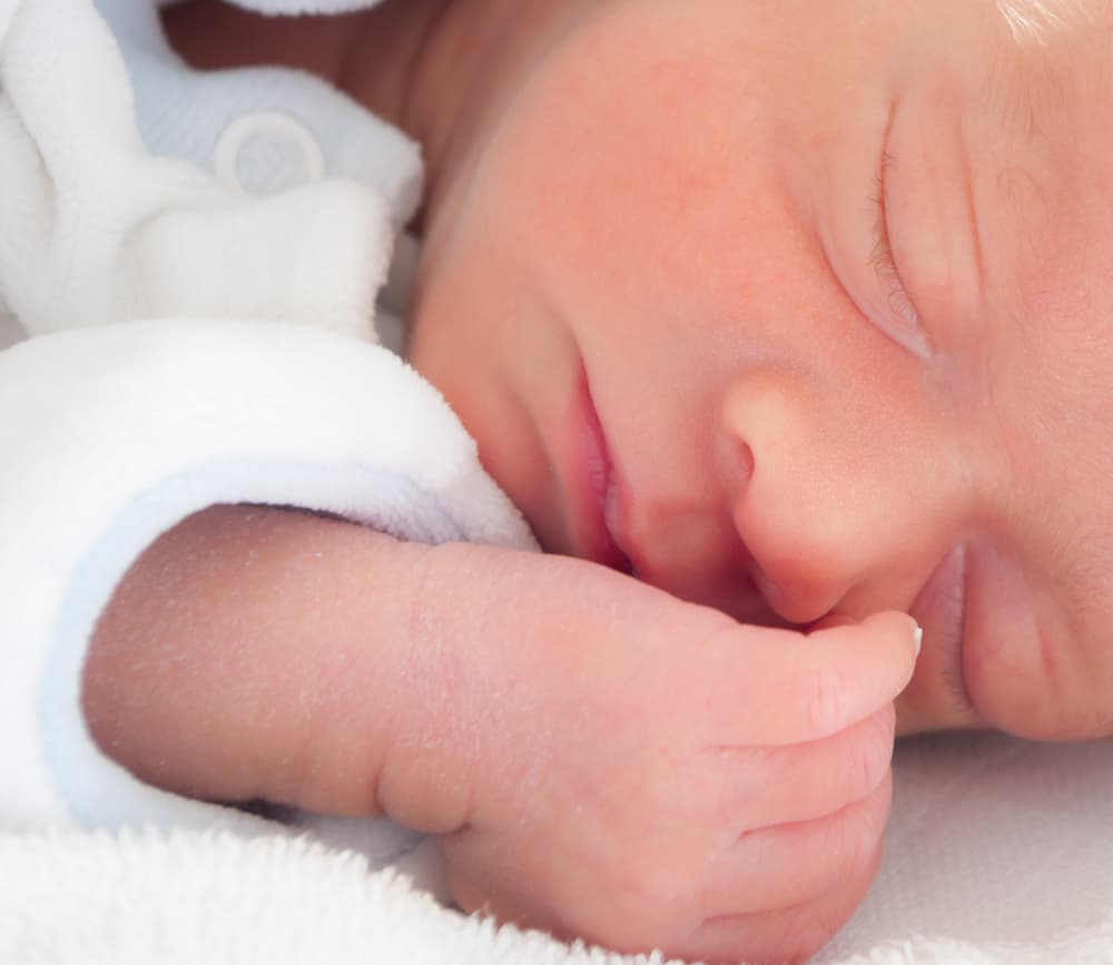 Carita de bebé varón prematuro a las horas de haber nacido.