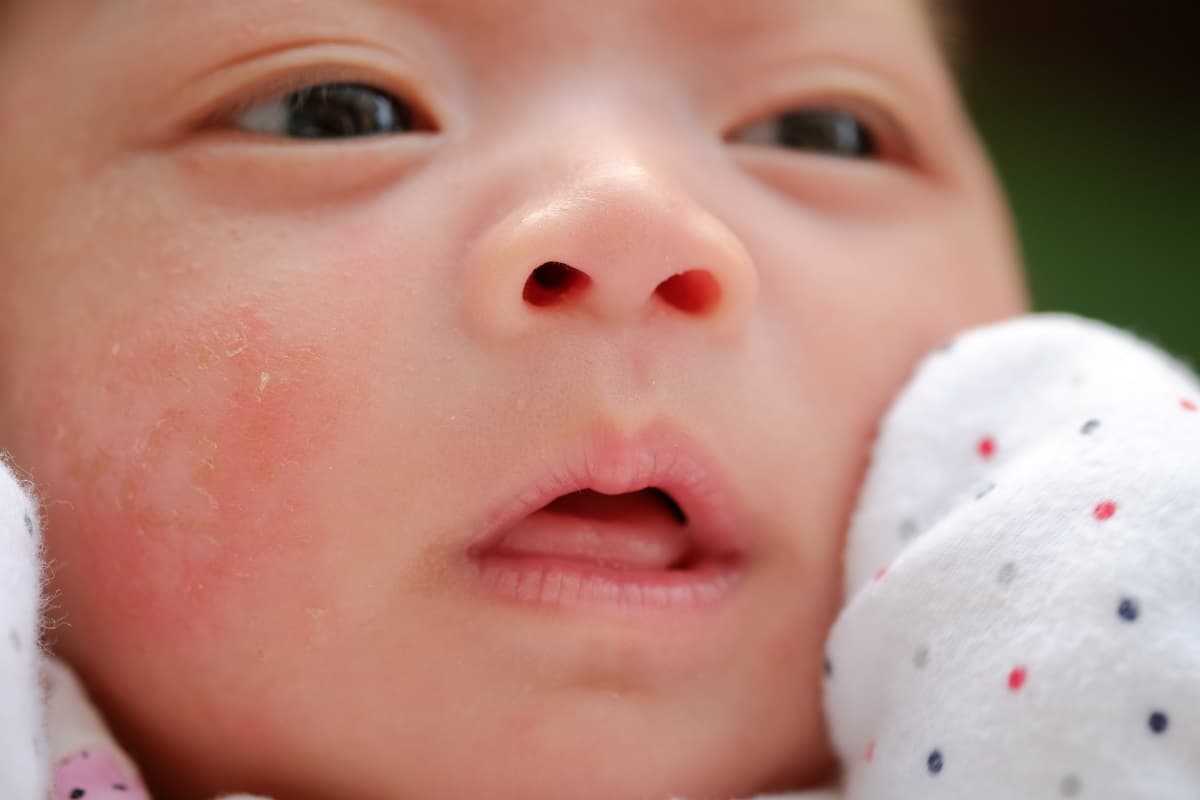 Cuando la piel del bebé se deshidrata o se irrita, suele picarle mucho al pequeño. Esto se llama dermatitis atópica y se presenta en mejillas, pliegues del cuello, detrás de las rodilla u orejas, o en los codos.