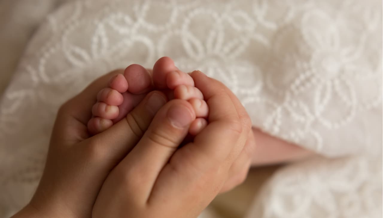 Coloca las palmas de tus manos en las plantas de sus piecitos por unos segundos. Posteriormente, acaricia sus muslos y pantorrillas con firmeza y cuidado, siempre yendo hacia arriba.