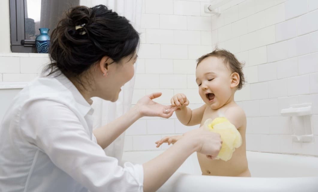 En la tina de baño del bebé coloca un poco de agua tibia y bicarbonato de sodio para darle a tu bebé un ligero baño de esponja sobre el área afectada. Verás como el agua refrescará las quemaduras por el sol.