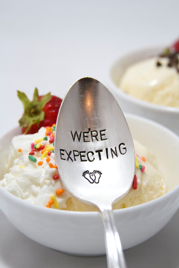 Estamos esperando... un bebé. Tazas y cucharas con anuncios de embarazo son una forma muy creativa para dar la gran noticia ¿no lo crees?