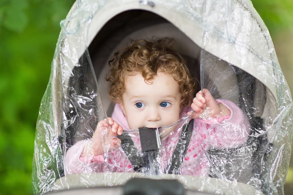 Traer contigo un protector de lluvias para la carriola de tu pequeño no sólo evitará que se moje, también será fundamental para que no reciba fuertes bocanadas de aire.