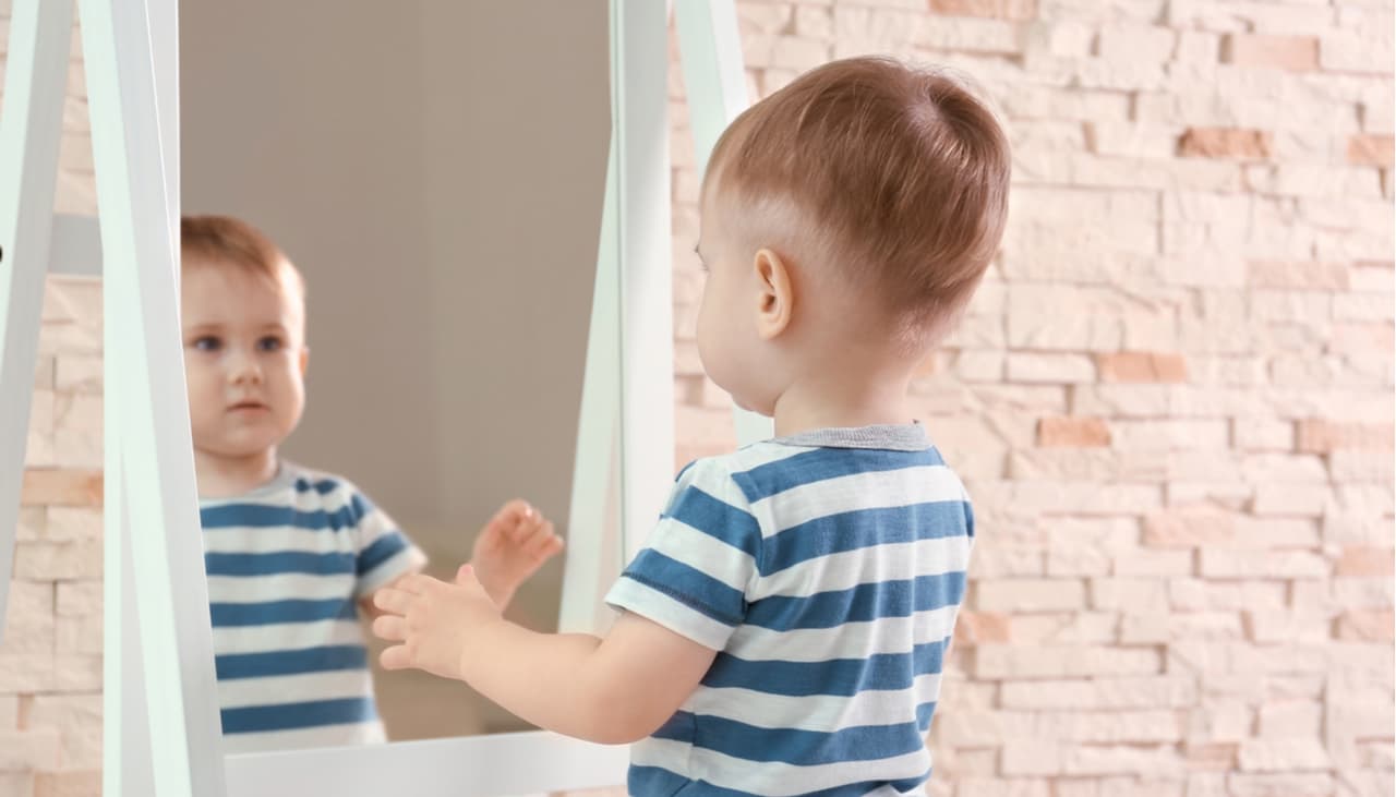 Coloca un espejo frente a él y pídele que toque su naricita, ojos, pies y brazos. Así lo ayudarás a reconocer otras partes de su cuerpo y ejercitarás sus extremidades.
