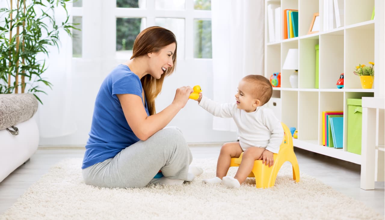 Los bebés pueden practicar esta habilidad sentándose en una sillita o taburete. Busca uno que sea de su altura (los piecitos deben tocar el piso), haz que tu pequeño se ponga de pie y recoja un objeto, luego pídele que vuelva a sentarse.