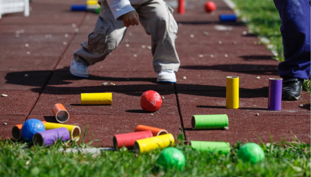 Este juego es recomendable para niños de 13 meses en adelante. No es necesario que gastes, puedes utilizar botellas de plástico y llenarlas con arena, arroz o frijoles; el objetivo es que tu chiquitín lance una pelota y tire la mayor cantidad de bolos.