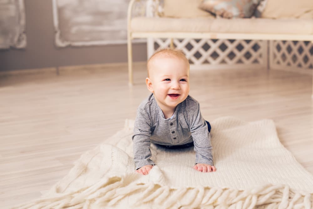 Su visión está tan avanzada que sabe reconocer caras, por lo que se interesará más por su imagen en el espejo. Juega con él en el espejo, enséñale a mirarse. Deja que explore tu hogar, no lo encierres demasiado tiempo en un corral. El andador no está recomendado por ser muy peligroso. En su lugar, lo ideal es modificar tu hogar para que sea a prueba de bebés (por ejemplo, cubrir las tomas de corriente o poner una puerta en las escaleras).