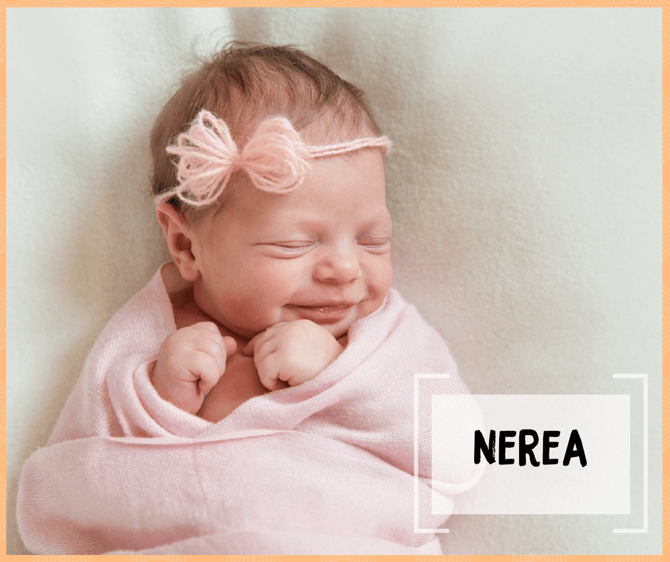 Significado: "la que manda en el mar". Derivado del griego, Nerea también significa "nadar". Este nombre encuentra sus raíces en las Nereidas, las ninfas marinas que eran reconocidas por su actitud amistosa y que tenían fama de ayudar a los marineros en problemas.