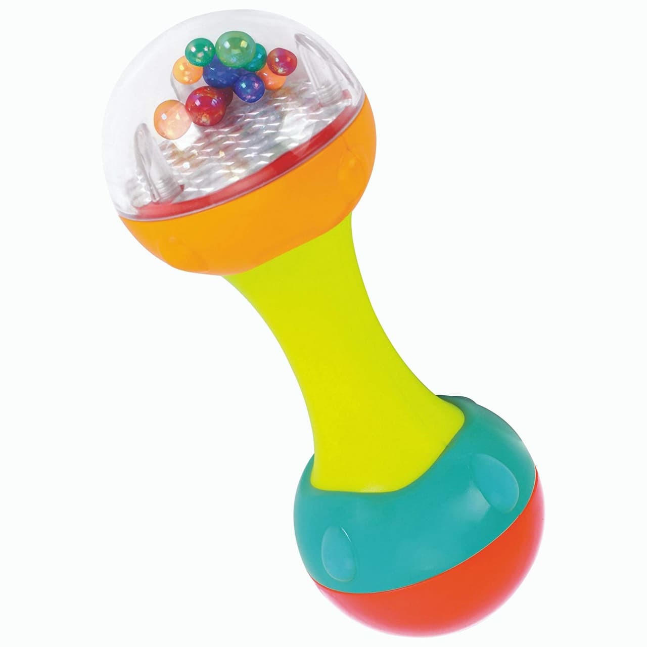 Cuando de sonajas o mordederas se trate, opta por las NO convencionales: coloridas, texturizadas o de goma. Además de proveer mayor comodidad a tu bebé, estas características las harán más aptas para que comience a jugar por sí mismo. Puedes ver modelos muy recreativos de marcas como Fun Wee.