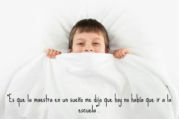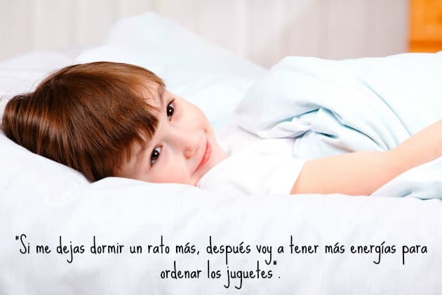 Cada mañana cuando los vamos a despertar tienen una excusa diferente para poder quedarse un rato más en la cama. Lo bueno de verlos tan temprano y con cara dormidos pidiéndote " por favor, un ratito más" es que cada chico pone en juego su creatividad para inventar una excusa lo suficientemente convincente para que lo dejes dormir unos minutos más.