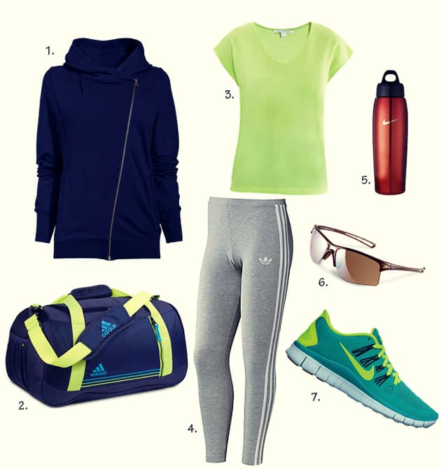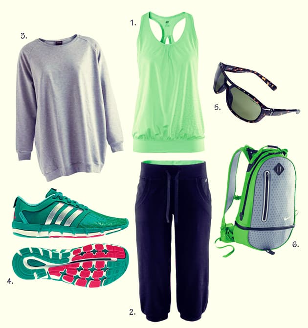 Calzas cómodas, un buen suéter, bolso para cargar sus cosas, unas zapatillas lindas y cómodas, gafas para protegerse del sol y una botella para el agua... Este look deportivo completo será el regalo ideal para una madre que sale a hacer ejercicio.