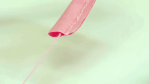 Jala el hilo interior para voltear la tela y que la costura quede invisible. Corta el sobrante.