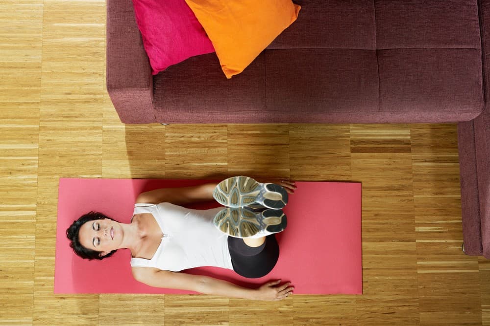 Túmbate sobre una esterilla o colchoneta con las rodillas flexionadas y la espalda relajada. Inhala produndo y retiene el aire algunos segundos mientras contraes la zona abdominal. Luego exhala el aire y repite el ejercicio entre 5 y 10 veces.