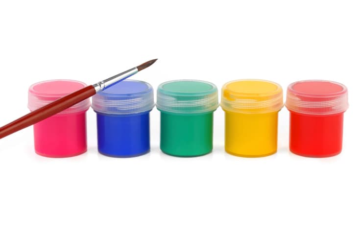Florero personalizado. Con tan solo un viejo recipiento de vidrio y las témperas del colegio puedes hacer un lindo florero para tu mamá. ¡No te olvides luego de comprar sus flores preferidas!