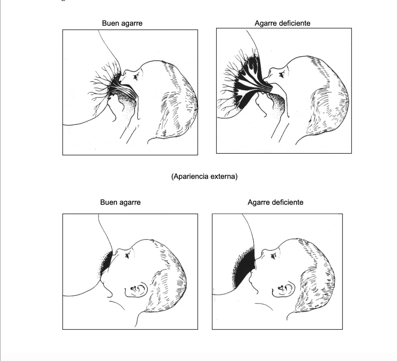 Alba asegura que se requiere que tu bebé cubra casi todo tu pezón con su boca y realice trabajo de succión, esto permitirá estimular de manera correcta el pecho y hará que los impulsos sensoriales se envíen al cerebro, mismo que ayudará a la producción de leche materna (el agarre correcto sería el de la imagen de abajo)