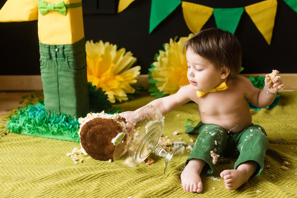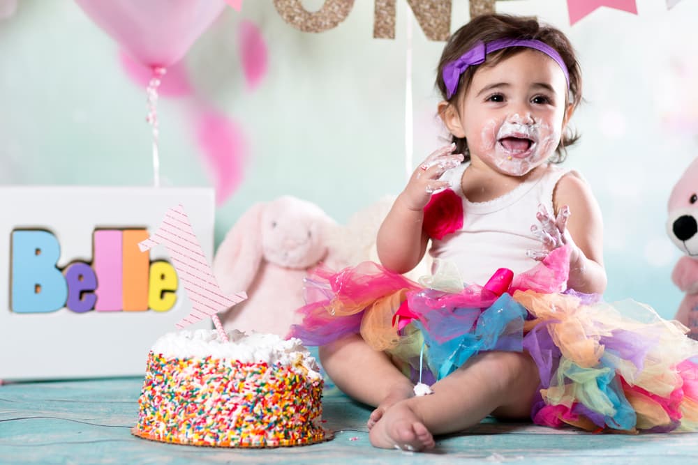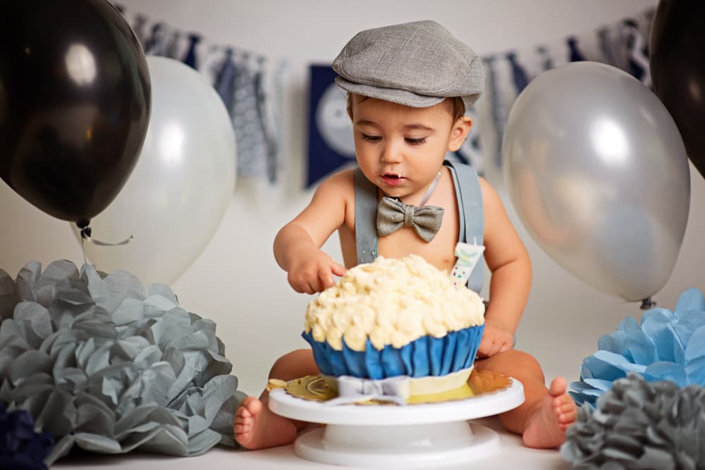 Cuando los bebés llegan al año están en edad de tener su primer encuentro con el azúcar refinada y degustar por primera vez un delicioso pastel de cumpleaños. Sin embargo, para no estropear el pastel principal que se le ofrecerá a los invitados, se le proporciona al bebé una versión más pequeña, que bien puede ser en colores llamativos y con mucha crema batida para que haga con él lo que desee, ya sea comerlo a mordidas, desbaratarlo con las manos, untárselo en la cara o simplemente deshacerle y dejarlo embarrado por el piso. ¿Qué es lo divertido? Documentar el evento mediante una sesión de fotos o video.