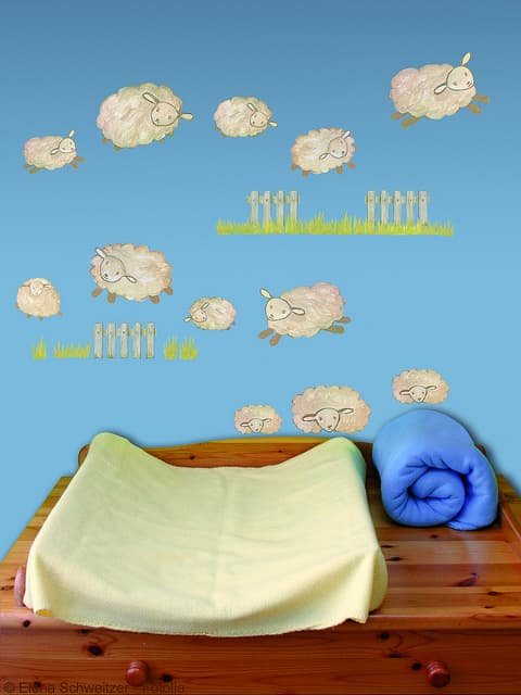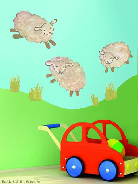 Podemos combinar los vinilos para bebés con el color de la cuna o de los muebles de la habitación. También podemos comprar mantas y sábanas del color predominante de la pared para combinar de manera audaz la decoración.