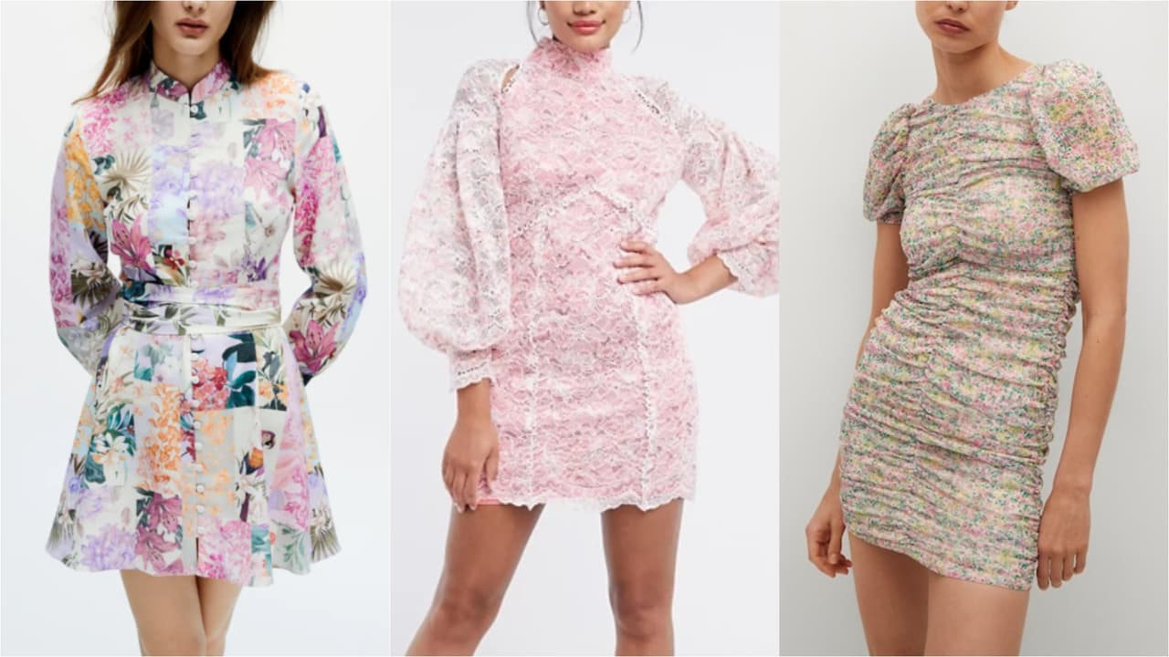 - Vestido mini de flores de manga larga de Zara. Precio: $69.90