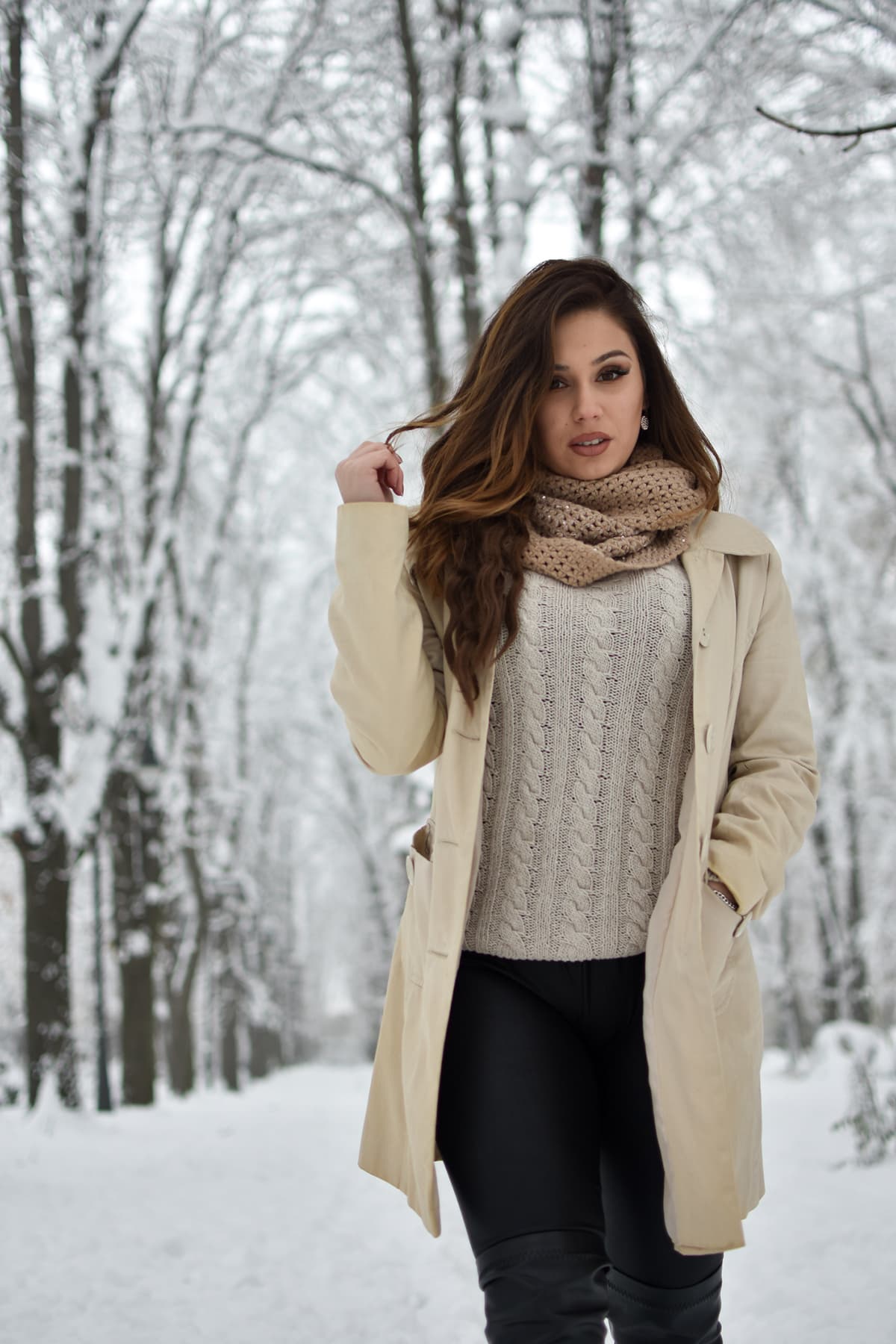 Cuando te vayas a la nieve, ¡ no olvides la botas! El siguiente outfit es ideal para tomar hermosas fotos mientras caminas por un bosque en temporada de invierno. Si estás planeando contactar con la naturaleza un fin de semana necesitas este atuendo.