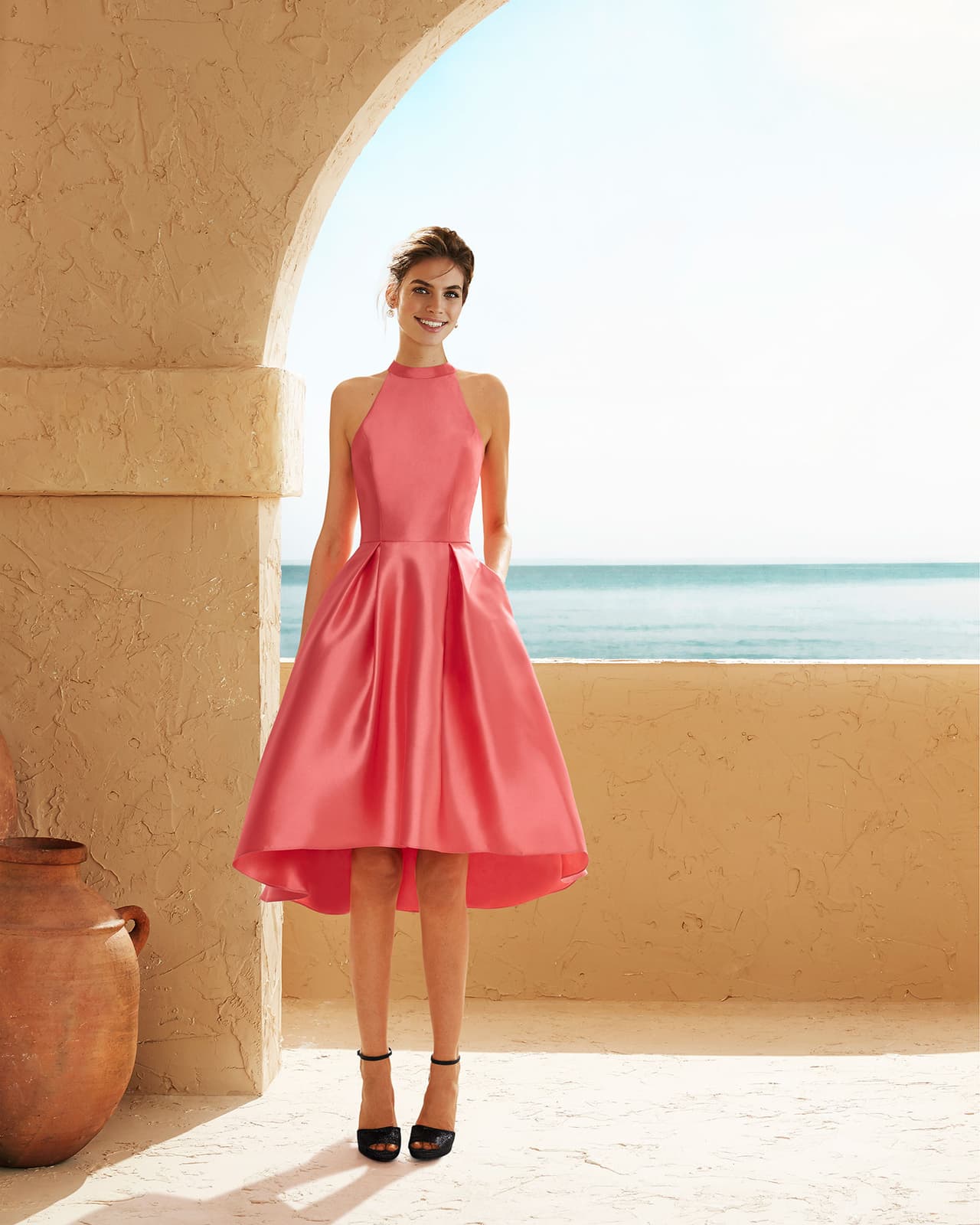 Los colores rosados son ideales para lucir en estas románticas celebraciones. Normalmente las telas satinadas son para bodas de noche o en salón, sin embargo, si tu vestido es corto puede ser perfecta para una boda de día.