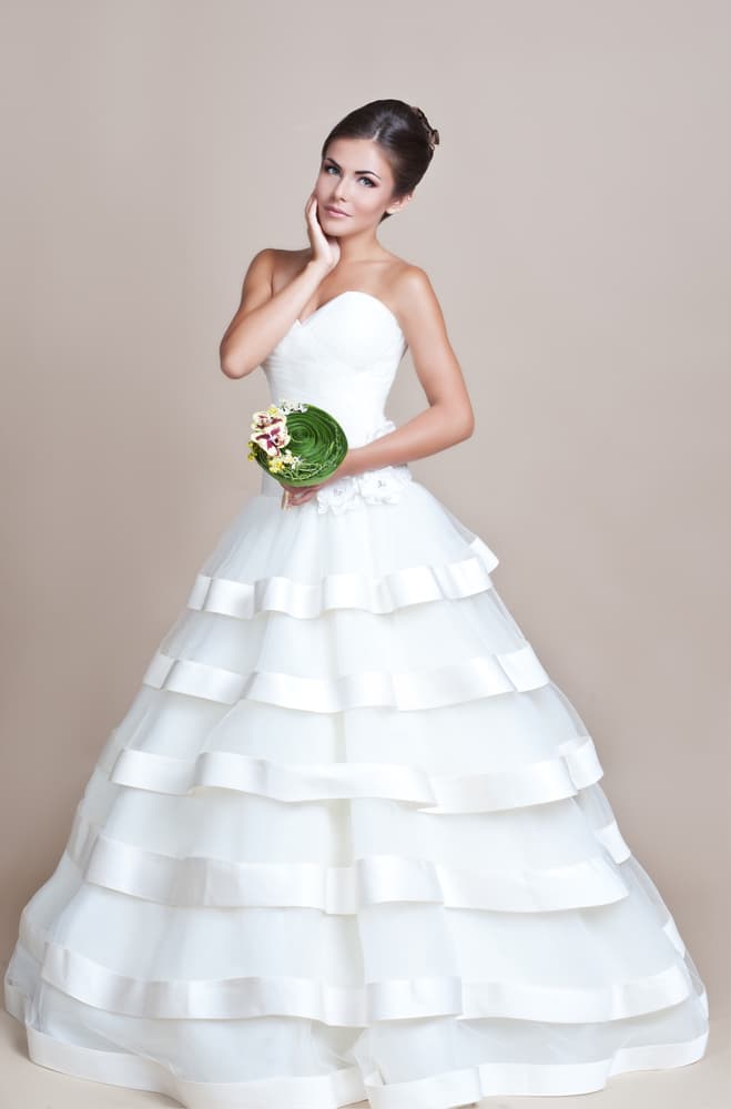 4.Vestido de novia con escote strapless y falda amplia