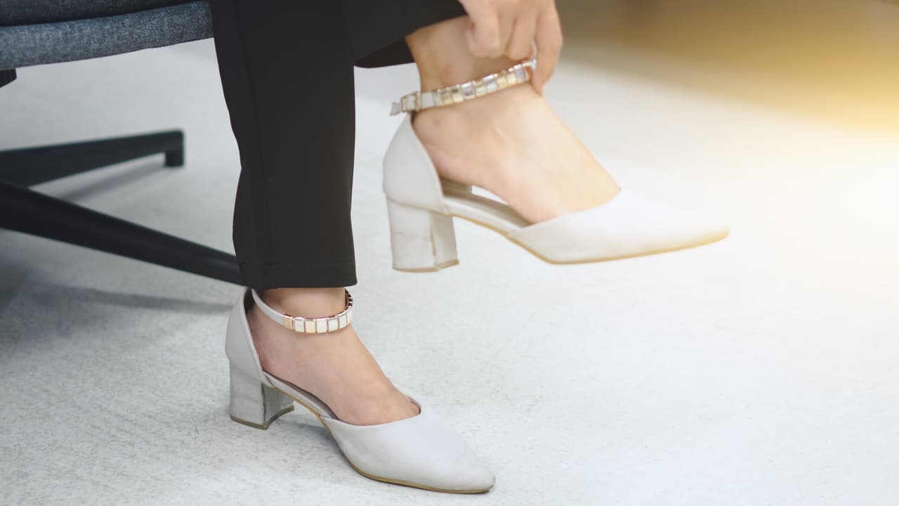 La altura del tacón determina el peso que cargas: entre más alto el tacón, más presión se genera. Por ello, los zapatos de tacón bajo, de 5 cm o menos son mucho mejores.
