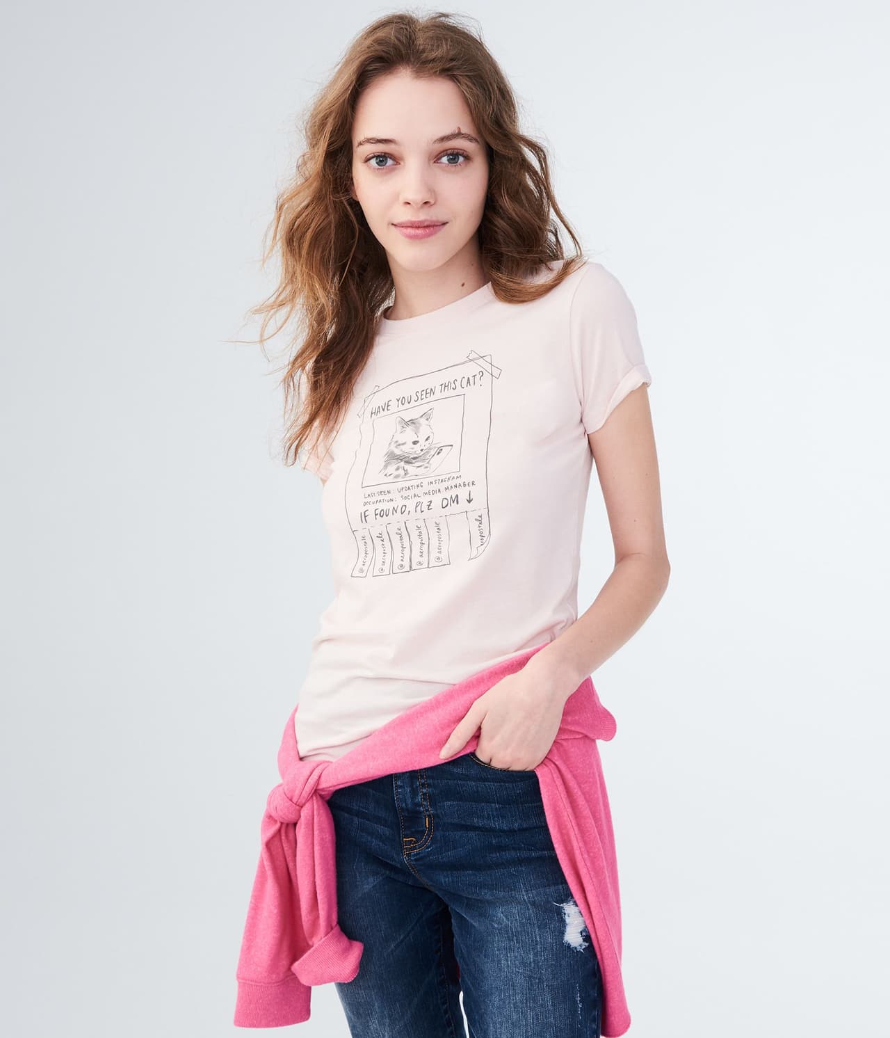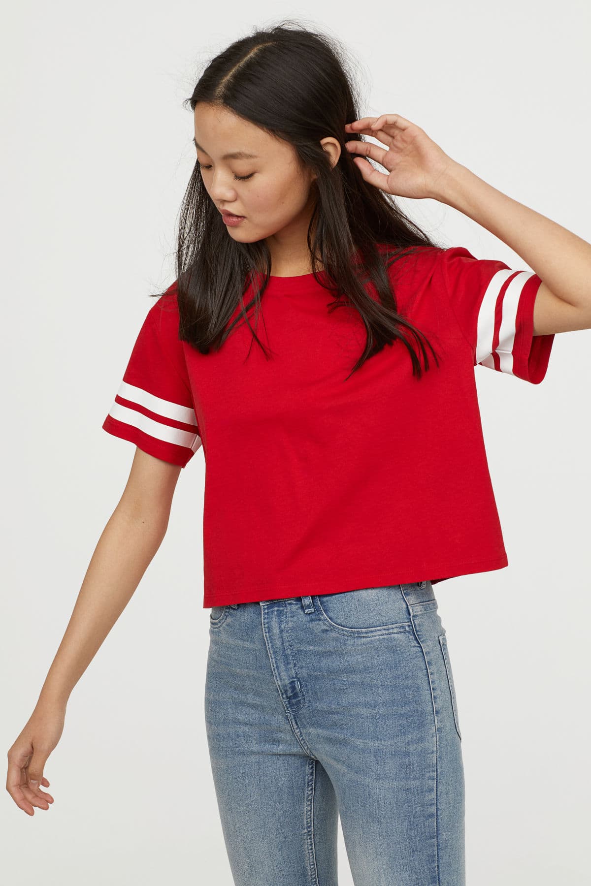 La mejor opción de prenda para el clima de verano es una camiseta deportiva, con cuello redondo y mangas amplias. Úsalo con unos jeans cortos y zapatos deportivos. ¿Lista para la acción de fin de semana?