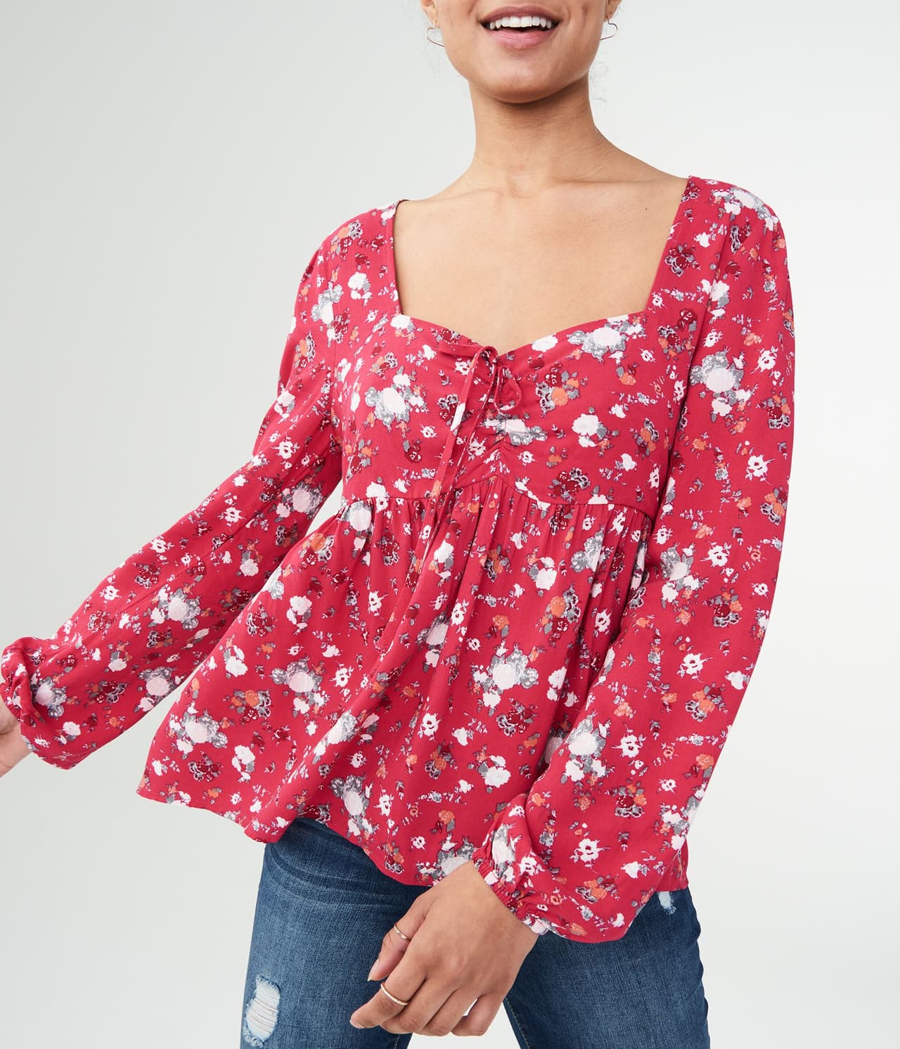 ¿Puede haber algo más romántico que un top babydoll? Un lazo en el escote en forma de corazón, una cintura imperio y una caída de la tela ligera son la combinación ganadora. Úsalo con un par de jeans desgastados para un contraste inesperado.