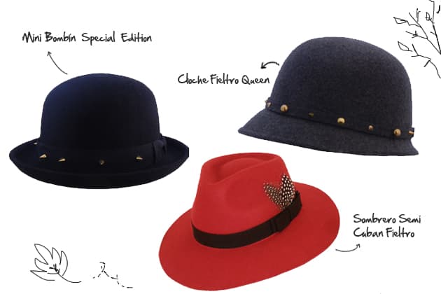 Estos tres que elegí para mostrarte, son de Compañía de Sombreros. Uno más lindo que otro. Tachas, plumas, colores, todo vale.