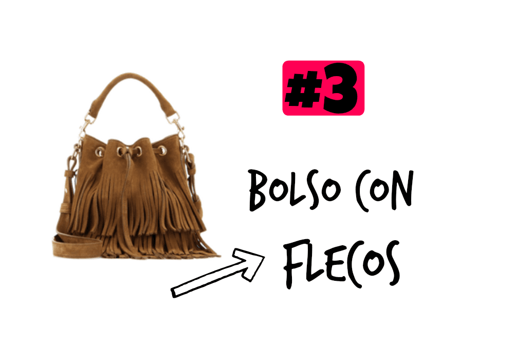 Los flecos son un must have de la tendencia boho. Por eso un accesorio que no puede faltar es un bolso bucket de gamuza con flecos. ¡Súper chic!
