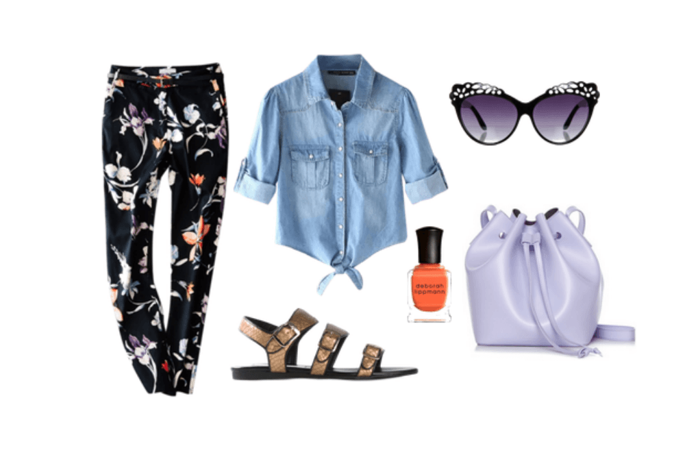 Si quieres un look casual con mucha onda, combina tu camisa de jean con un pantalón estampado. Añade unas sandalias metalizadas, un bolso bucket en tonos pastel y unas gafas de sol originales y tendrás un look fabuloso para tus outfits de día.